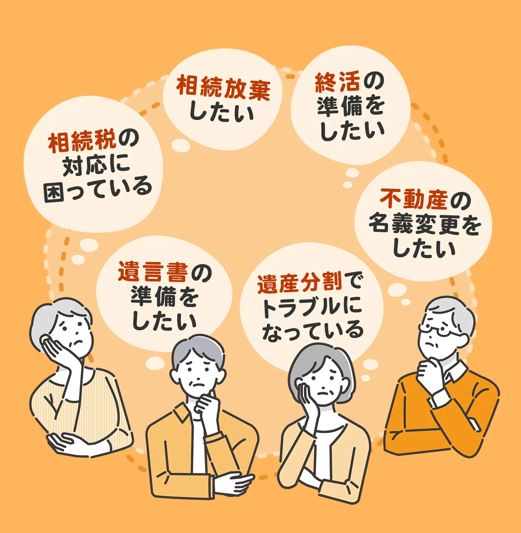 相続あんしん相談室では、そうしたお悩みに寄り添いながら、相談内容に応じて適切な専門家をご案内することができます。